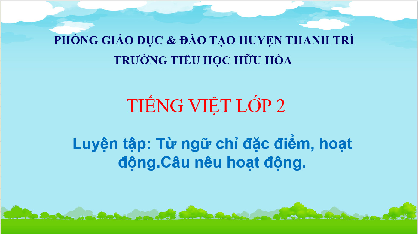 TV - Tuần 11 - Luyện tập Từ ngữ chỉ đặc điểm, sự vật. Câu nêu hoạt động